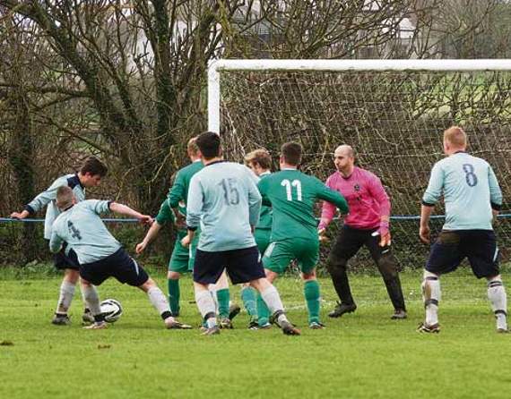 The eagerly anticipated local derby in Division Two between Tintagel and Boscastle at Butts Field went the way of the visitors who won 5-2. James Bosley and Martin Heal were both at the double with Sam Haddy also on target. Shaun Wickett and Shaun Keeble were the home marksmen.