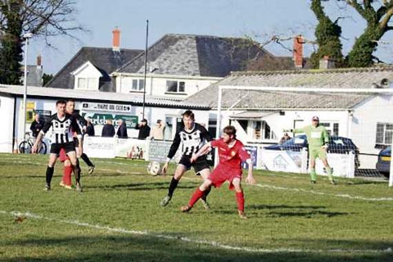 On the hour, Davey rounded off another fine Launceston passing movement to make it 4-0 before completing an excellent hat-trick in the 72nd minute, drawing Moore and rolling the ball into an unguarded net.