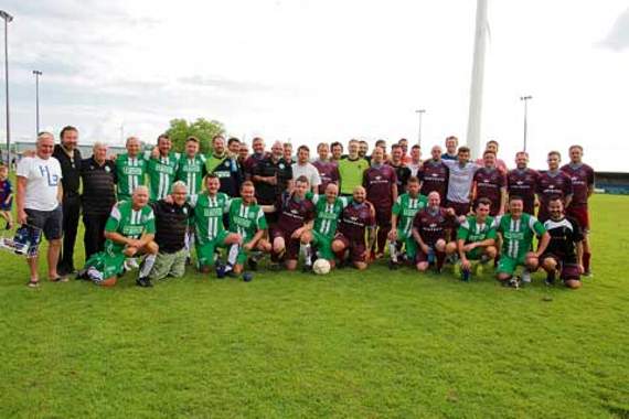 Once referee Andrew Quinn blew the final whistle, all of the players stayed on the pitch to take photos before Tilley was given a plaque from the club by co-organiser of the day Paul Hider, which read: ‘Liam Tilley, thank you for your 20 seasons of dedication, you’re a true Claret’.