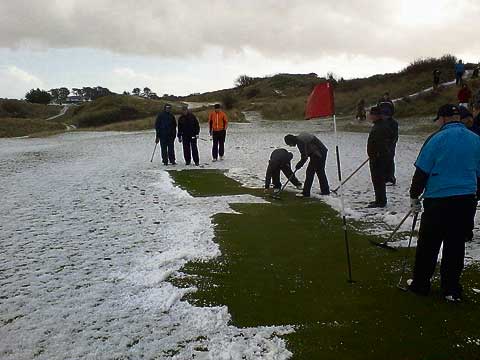 A tough course at the best of times, St Enodoc was, on the day, lashed by rain and hail in 60mph squalls from which there was no respite. There was nowhere to hide for the players; they had to just play through the worst of it and keep smiling.