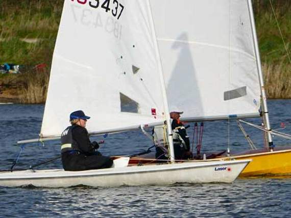 Sampson sped up to fourth and Linda Spiller (Laser 4.7) overtook Hilton at West, starting a ding dong battle that continued for the rest of the race, Hilton getting back in front at Dam Green but Spiller, despite a last minute near capsize, finished 20 seconds in front.