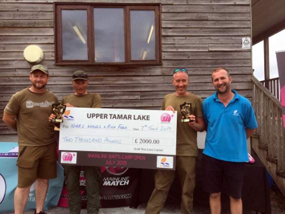 LAUNCESTON duo Nigel Woods and Rich Ford were the winners of the second Mainline Baits Carp Open pairs event which took place at Upper Tamar Lake from July 5-7.