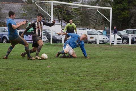 Bonney went close to completing his hat-trick, early in the second half, but his effort came back off the crossbar only for team mate Matt Andrew's shot to hit the outside of the Bude post and stay out.