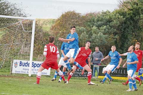 The goal which ended the game as a contest came only four minutes later, and will not be remembered fondly by Bude's Dan Starkey. In attempting to cut out Nick Hurst's cross, the defender succeeded only in diverting the ball into his own net with a spectacular flying header.