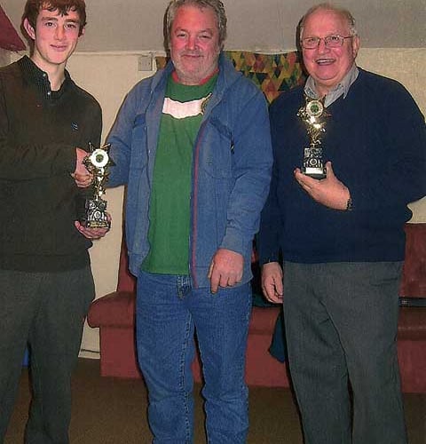 RYAN Pollard, right, has won his first two trophies for snooker, at his first time of entering any competitions. In the Christmas competitions at Stratton, Ryan entered the doubles with Vic Bickle, left, and in the final, best of five frames, they beat Kevin Benson and Nick Cornish 3-0. Ryan then had to play Kevin in the singles final, playing well he won 3-0. The trophies were presented by Dave Ewan. Snooker plays a very important part in Ryan's life and with his undoubted ability he is a rising star.