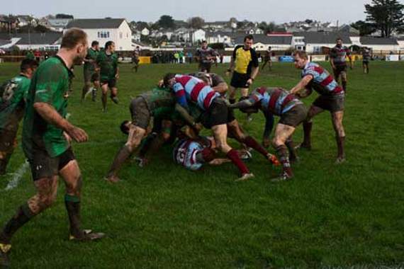 Despite the worsening playing conditions, the increasingly murky skies and the loss of Duncan Tout with a knee injury — replaced by Charlie Watton — Bude were quick to maintain the ascendancy when a Joe Wilson break from a scrum, an area where Bude had asserted dominance, led to a try for elusive winger Tim Green.