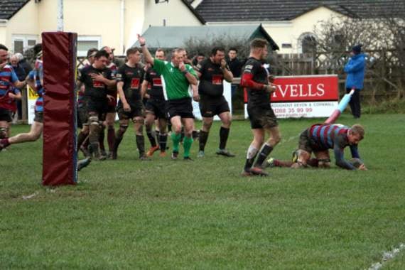 With five minutes to go Bude grabbed their bonus point try as another ferocious driving maul was illegally brought to ground and referee Steve Smith awarded a penalty try.