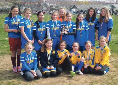 In the back row, from left, are Ellie Lester, Florence Thompstone, Yvanna Garcia, Hannah Palin, holding the trophy with Chloe Lewis, with Izzy Nixon, the goalkeeper, in between, Tia Gibson, Kate Harrison and Grace Embra.