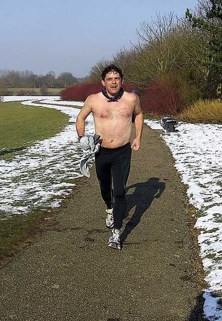 Day one started at minus 12c and ended with a PB of 4:25:47 which smashed Davey's previous PB by over ten minutes which he had acquired 20 Marathons ago. He decided to celebrate his new PB by running over the finish line bear-chested in the freezing conditions.