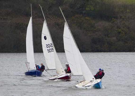 Starboard was called on port tackers and windward boats were pushed further upwind. The Hilton/Dabbs dinghy lost ground when it touched the buoy at Dam Red and it remained at the back of the train until stealing the wind from the others and edging past shortly before Pinkie on the third lap. And that’s how it stayed until the end with Heasman and Wills taking third.
