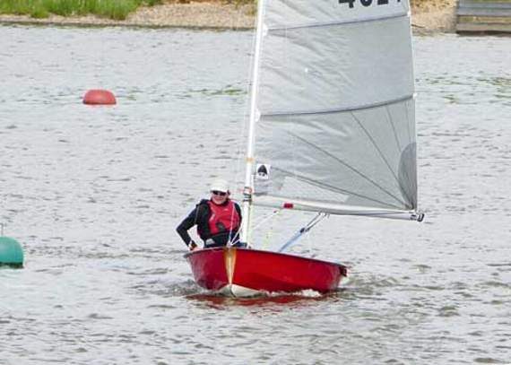 Paul Whybrow, in his familiar red Solo, did best at keeping up and was second at the end of lap one, a couple of minutes behind, with Linda Spiller (Laser Full) third and Jane Chadney (Laser Radial) fourth.